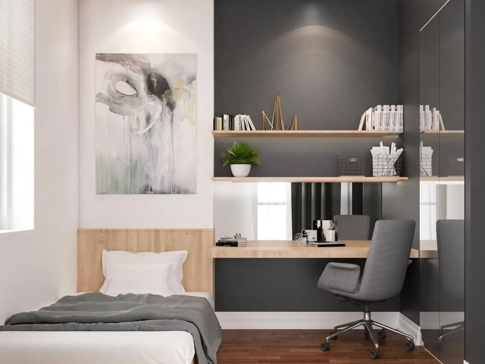 Phong cách hiện đại luôn được ưa chuộng trong các mẫu thiết kế phòng ngủ 28m2. Với thiết kế này, sự tối giản và tiện ích được đặt lên hàng đầu. Nội thất thông minh như tủ âm tường, giường có ngăn kéo hoặc bàn trang điểm tích hợp là lựa chọn hoàn hảo. Màu sắc trung tính kết hợp với điểm nhấn từ đồ trang trí sẽ tạo nên sự hài hòa cho không gian.