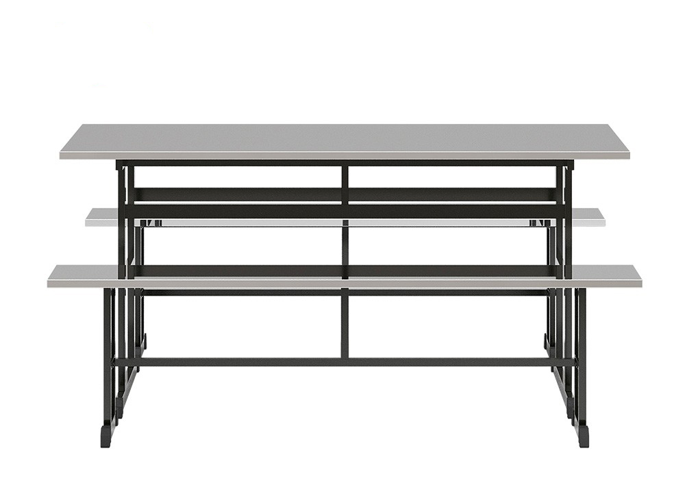 Thiết kế: Bộ sản phẩm đồng bộ (01 bàn + 02 ghế băng dài), gọn gàng, tiện lợi cho không gian ăn tập thể.