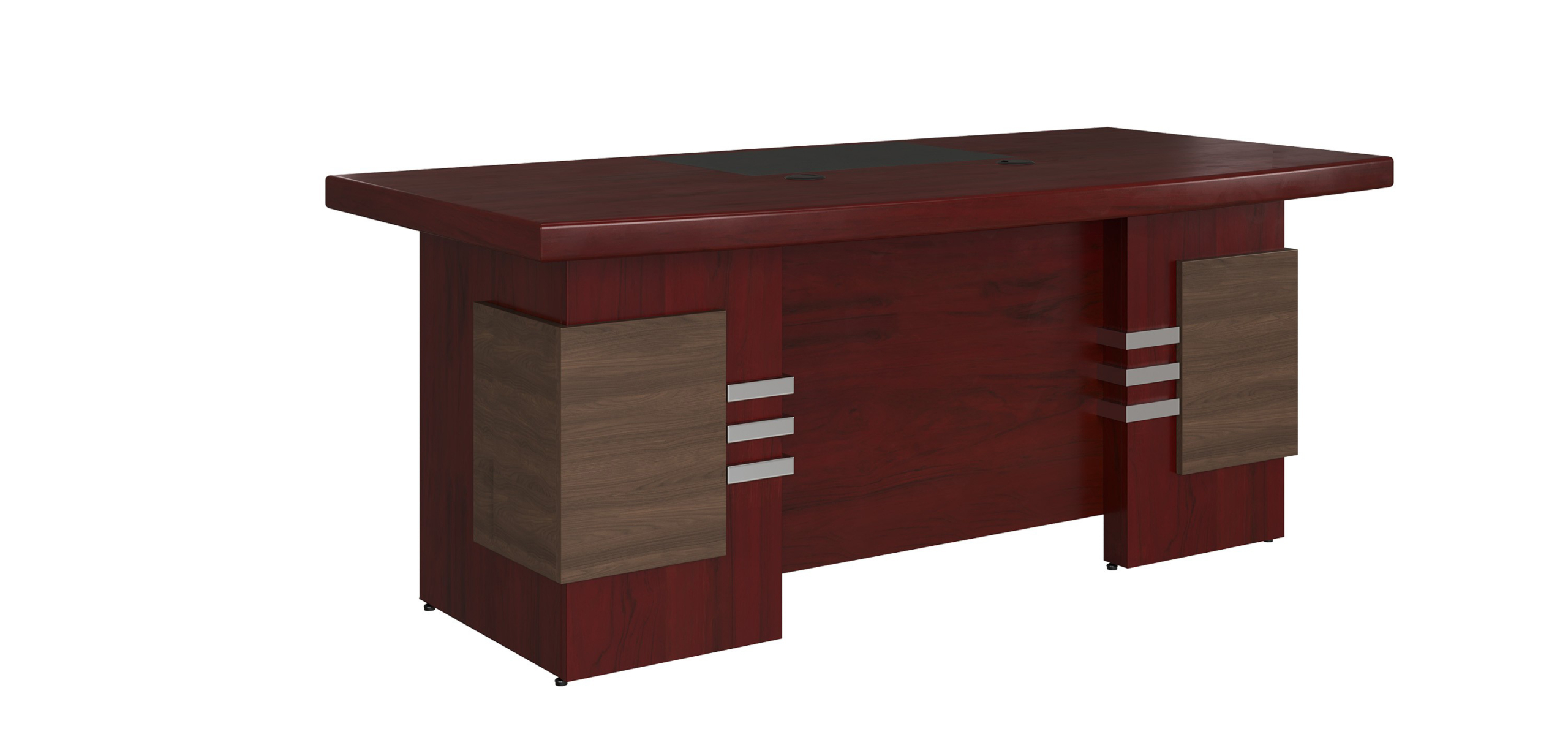 Chân bàn ốp gỗ và nan mạ tinh tế, thể hiện phong cách và vị thế của người lãnh đạo.
