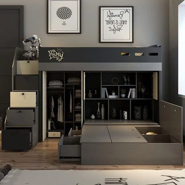 Mẫu giường tầng siêu đa năng dành cho bé với thiết kế thông minh tích hợp tủ quần áo và khu vui chơi