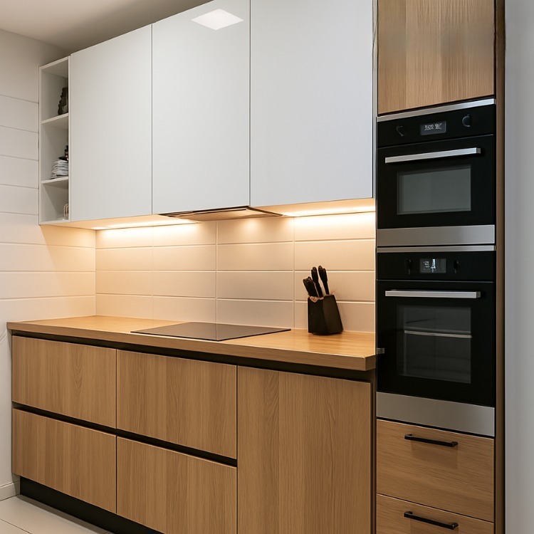 Phòng bếp: chọn Acrylic hoặc Laminate vì khả năng chống trầy xước, dễ vệ sinh dầu mỡ.