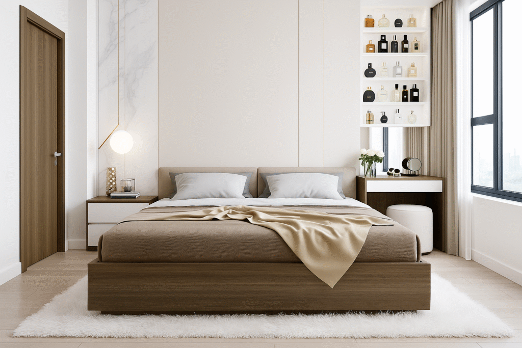 • Đảm bảo phong thủy: bố trí giường, tủ, bàn trang điểm theo hướng tốt cho gia chủ.