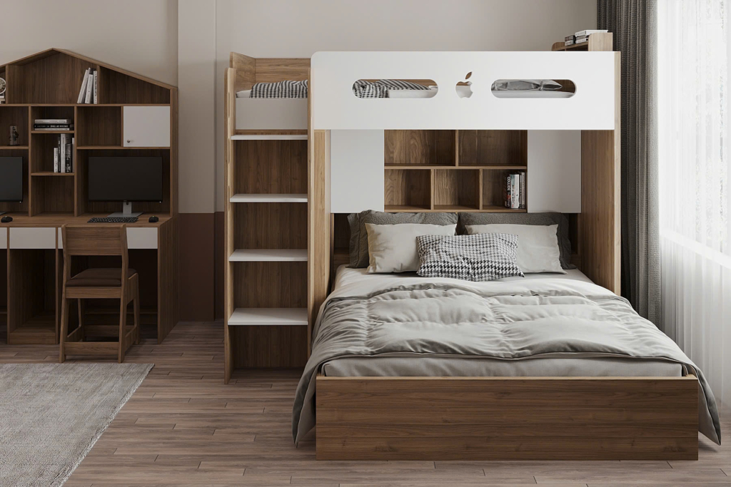 • Tối ưu không gian: tủ kịch trần, giường có hộc kéo, kệ đa năng.