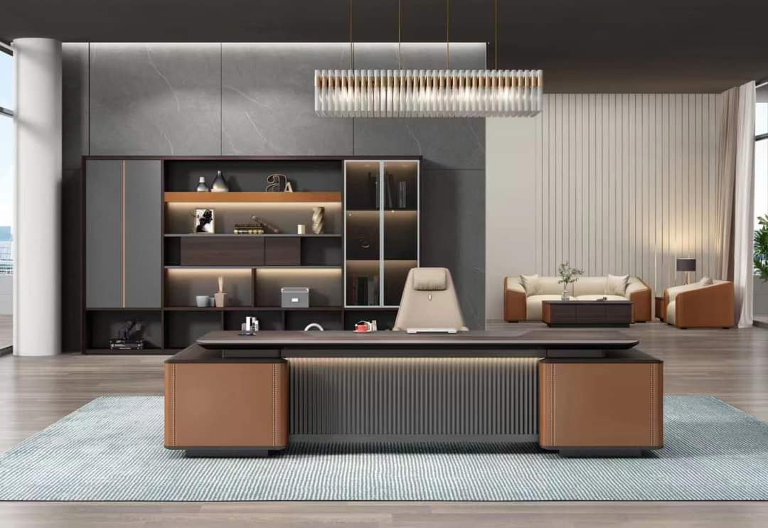 Kết hợp tọa sơn – hướng thủy: Bàn lãnh đạo lưng tựa vững chắc, phía trước thoáng rộng và tràn ngập ánh sáng.