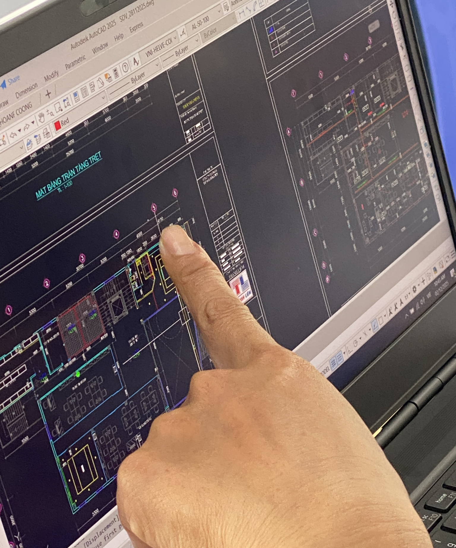 - Bản vẽ 2D triển khai: trần, sàn, vách, điện, mạng, điều hòa, cấp thoát