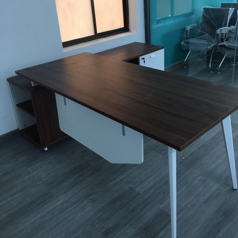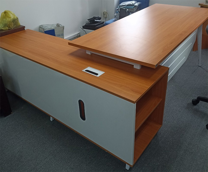 Thiết kế tủ phụ đồng bộ với bàn chính, đảm bảo tính thẩm mỹ tổng thể và sự tiện lợi khi sử dụng.