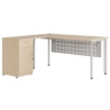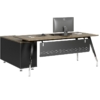 Phần yếm bàn giật cấp dạng lửng, được soi rãnh màu trắng tinh tế, tạo điểm nhấn nổi bật nhưng không làm mất đi vẻ trang nghiêm cần có của bàn trưởng phòng. Chân bàn dạng hộp chắc chắn, các góc chân được gắn nút nhựa giúp bám sàn tốt và hạn chế trầy xước nền khi di chuyển.