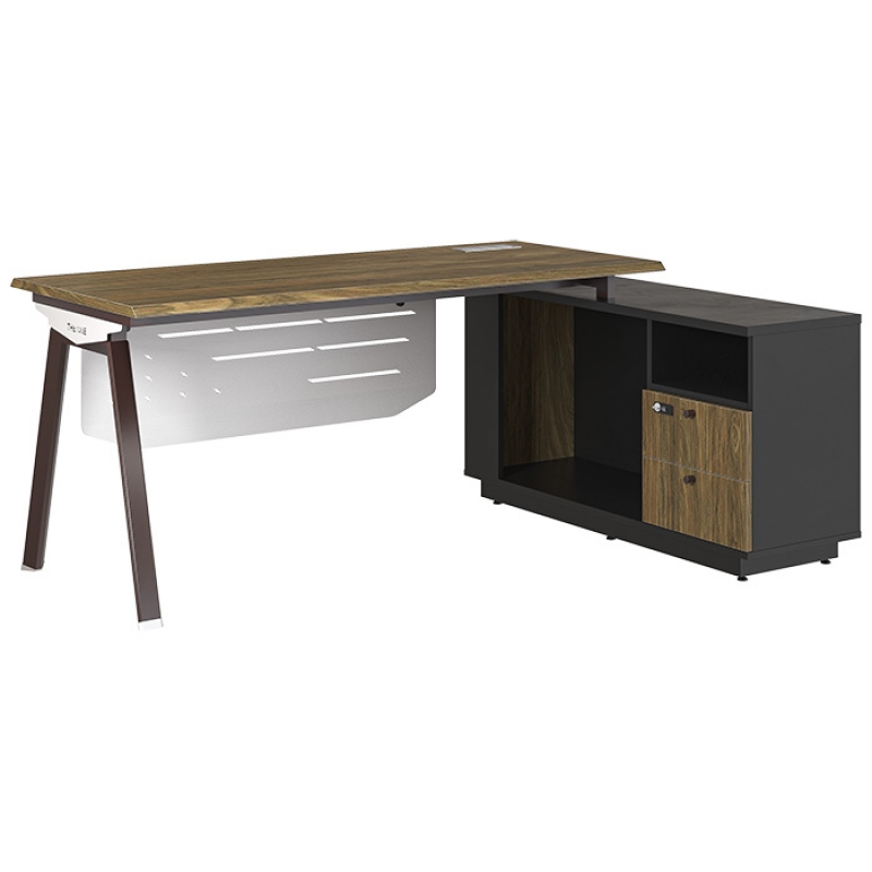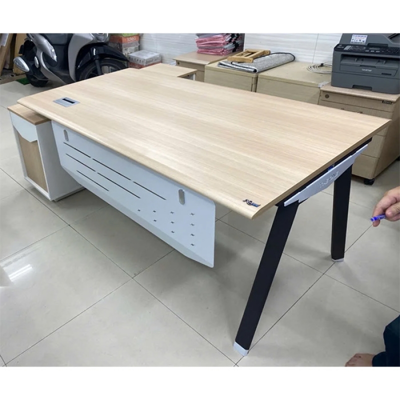 Kiểu dáng: Bàn trưởng phòng khung chân C17 biên dạng mới, có kết hợp yếm tôn, đi kèm tủ phụ liền ghép chữ L. Phụ kiện sử dụng loại cao cấp.