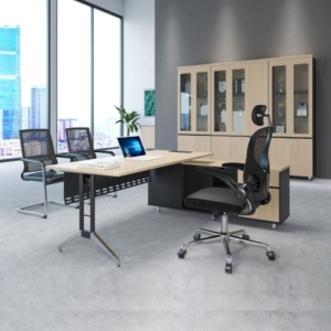 Phong cách thiết kế hiện đại thể hiện rõ qua việc sử dụng các đường thẳng vuông vắn, góc cạnh dứt khoát, tạo cảm giác mạnh mẽ, gọn gàng và chuyên nghiệp. Kiểu dáng này giúp không gian văn phòng trở nên ngăn nắp, khoa học và dễ bố trí nội thất đồng bộ.