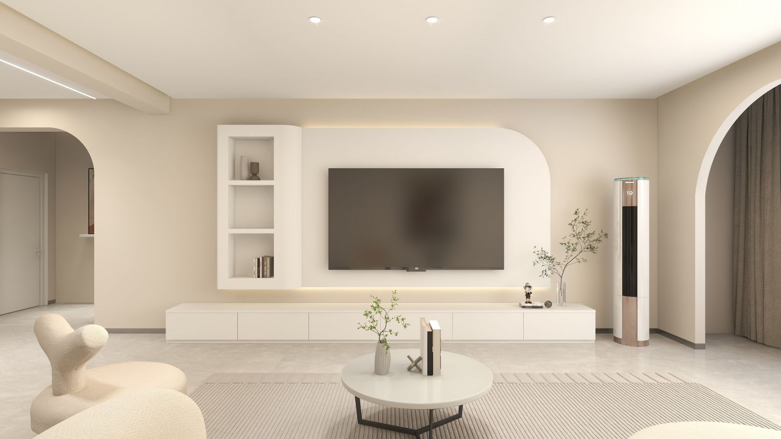Kệ tivi âm tường: gọn gàng, hiện đại.