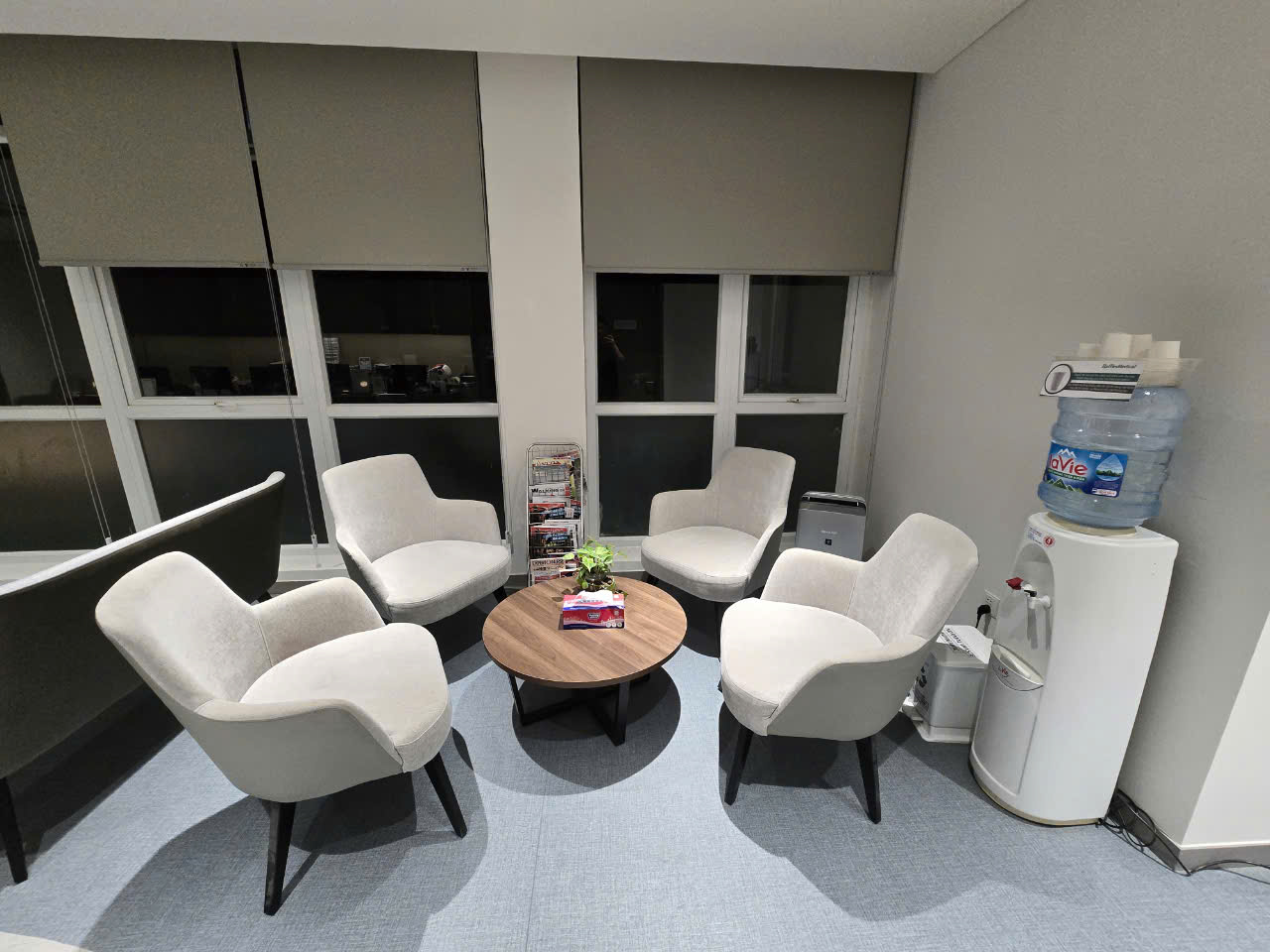 Điểm nổi bật: Không gian mở, sử dụng tông gỗ sáng và kính cường lực, tối ưu ánh sáng tự nhiên.